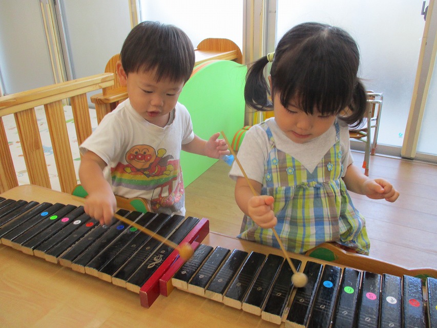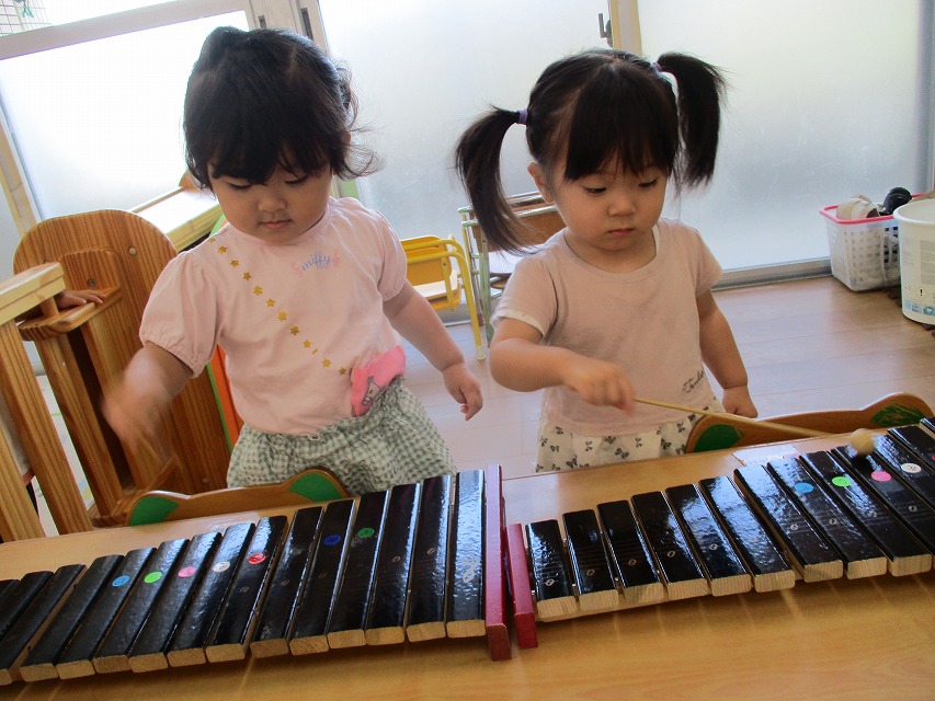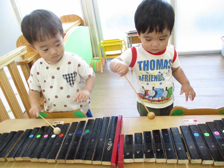 ポンポン叩くと、色んな音が鳴ることにみんな大喜びのさくら組さんでした♪