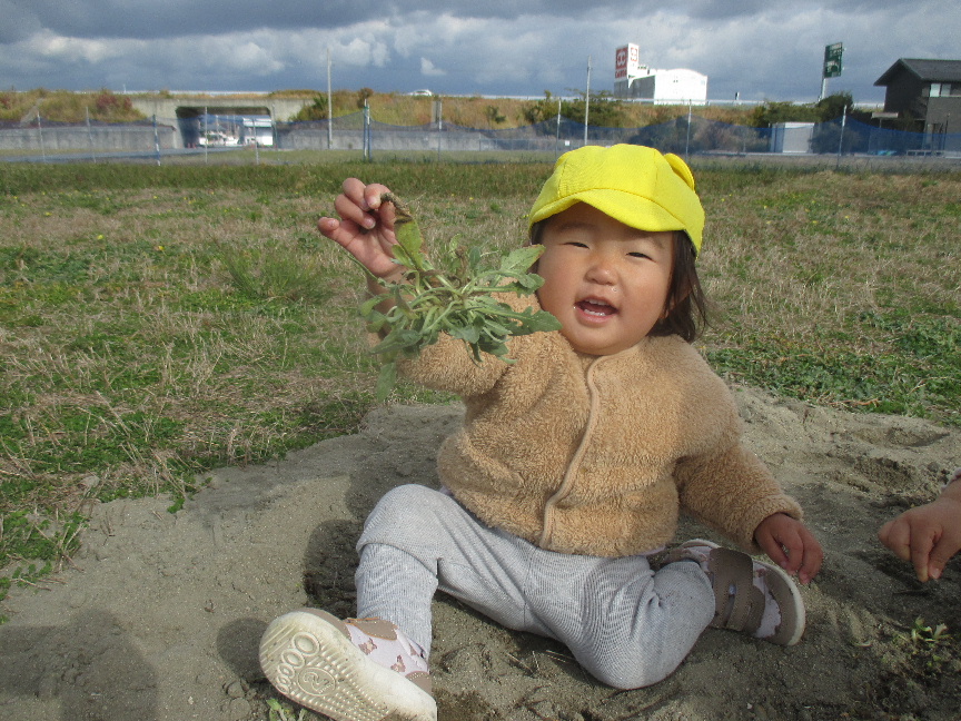 地面から生えている草にも興味を示し、引っこ抜いて嬉しそうに見せてくれました♫