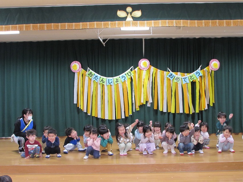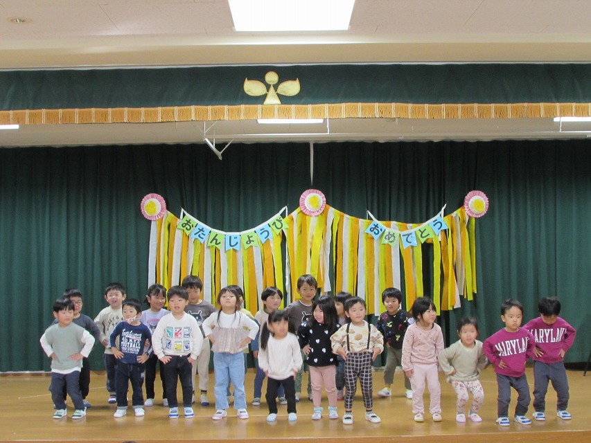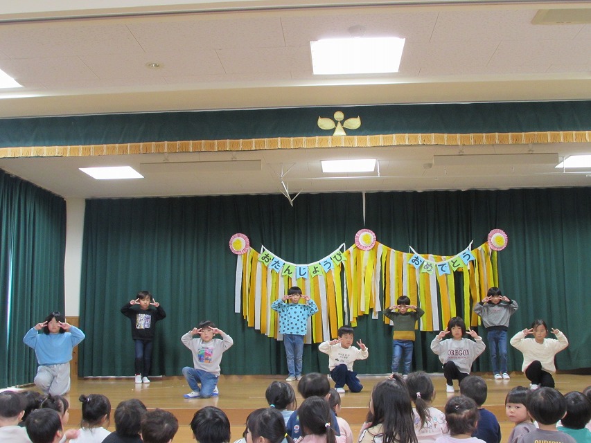 すみれ組は、「くれよんしんちゃんのおらは人気者」のお遊戯をプレゼントしました。