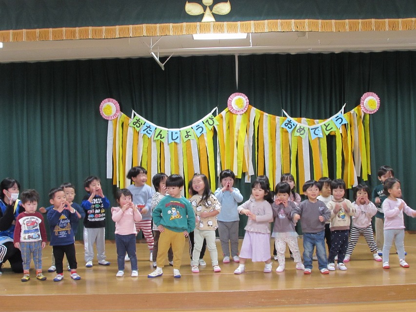 ゆり組は、「め組のひと」と「お祭りマンボ」のお遊戯をプレゼントしました。