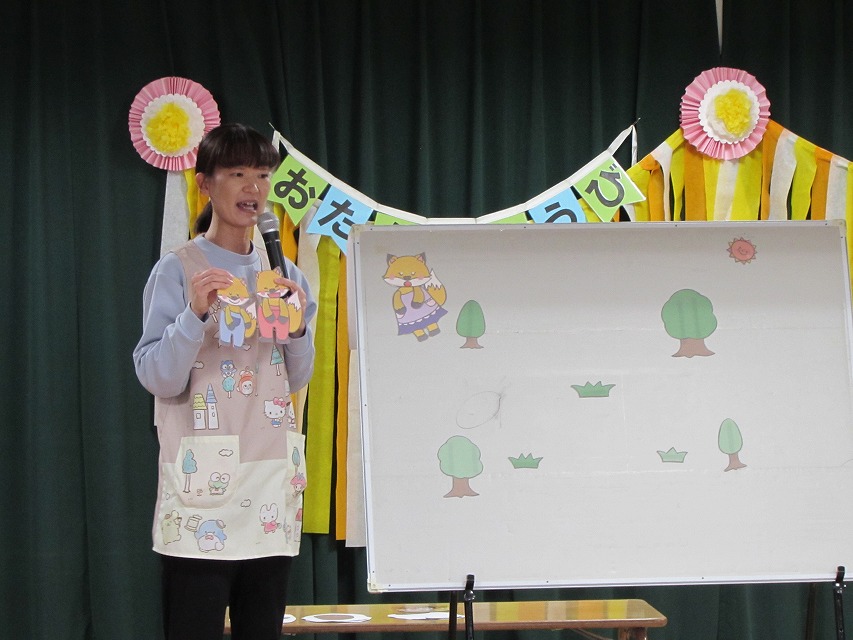 最後は、保育教諭からパネルシアター「きつねのつねた」の出し物をプレゼントしました。