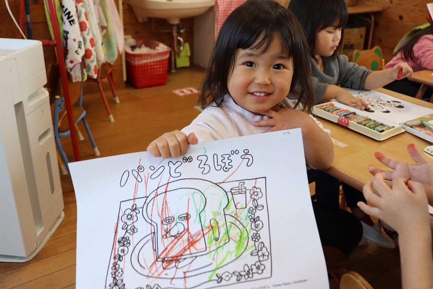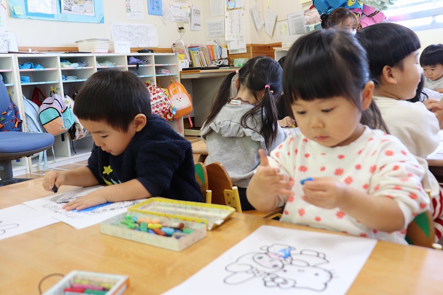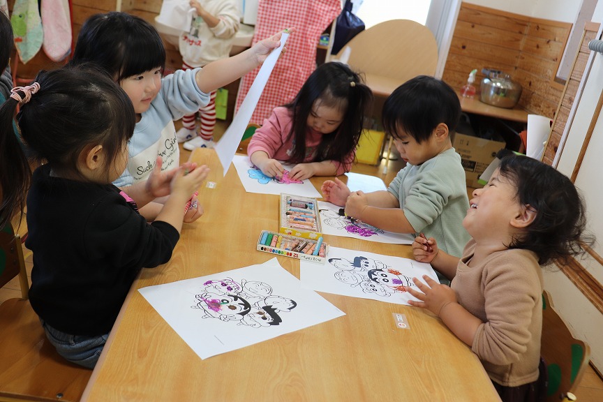 大好きなぬりえをしました✍筆圧が濃くなってきて枠を意識しながら塗れるようになってきました✨完成したぬりえを見せ合って「じょうずだね!」と伝え合う姿がとっても可愛かったです💕