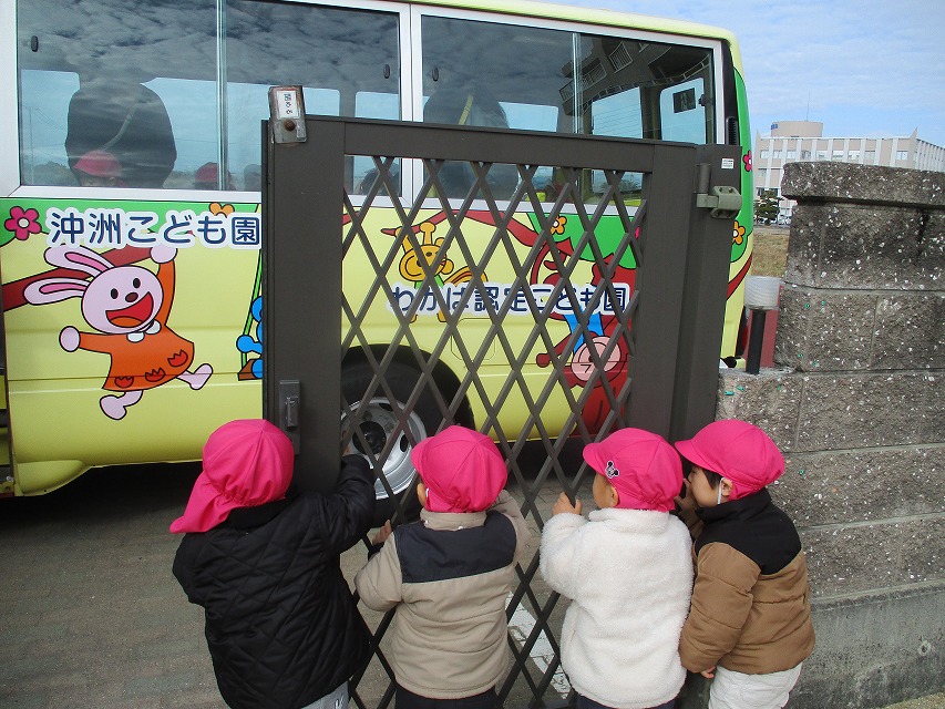 園バスを降りてからも「ばいばーい✋」と言ってバスを見つめていた子どもたち☺