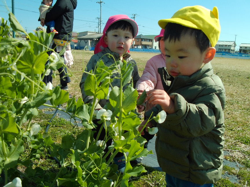 畑で育てている野菜や花を発見すると、近くまで行きじーっと観察したり触れてみたりして興味津々の様子です♫